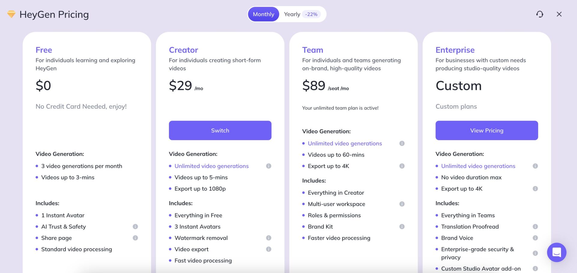 さらに、旧料金プランでは自分のAIアバター動画を作りたければCreatorプラン以上に加入するのが条件で、日本円で最低でも4800円ぐらい払わなければなりませんでした。